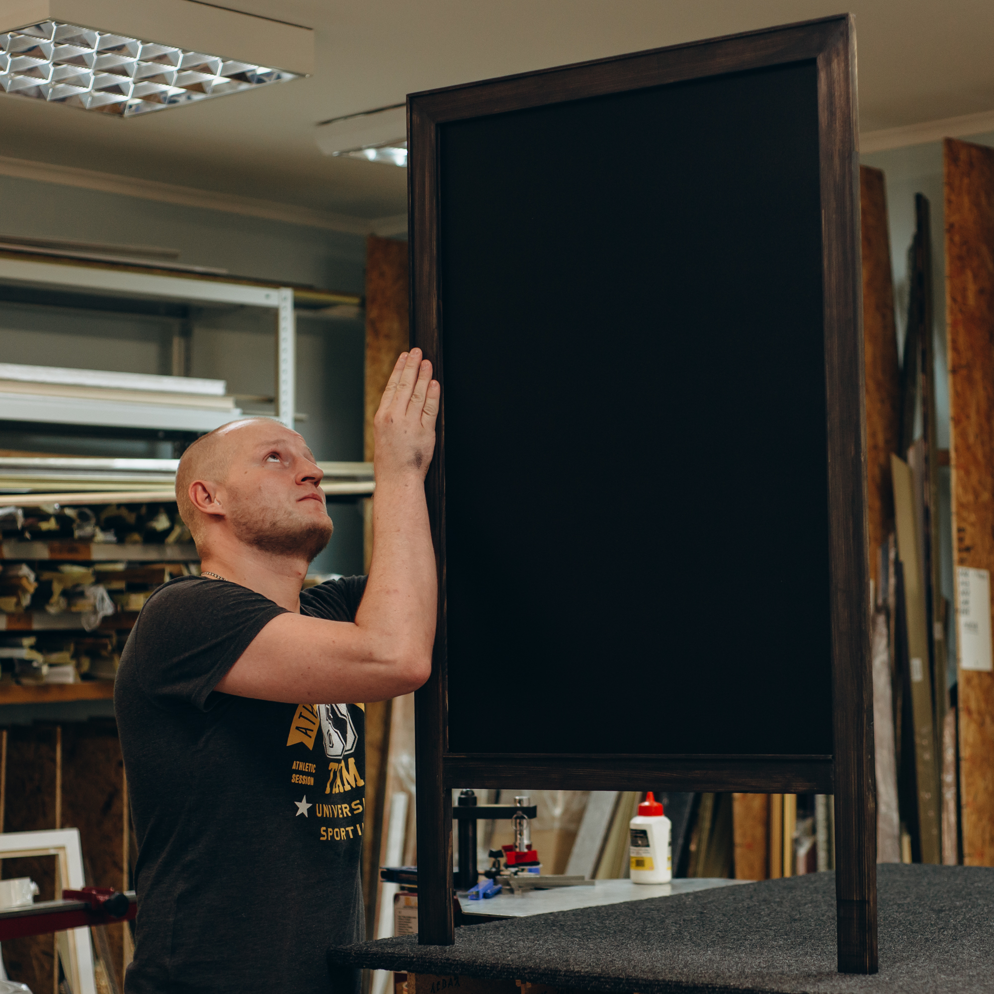 Мы всегда держим наличии самые популярные размеры меловых досок и штендеров. Приезжайте к нам в мастерскую и заберите то, что подходит вам больше всего.